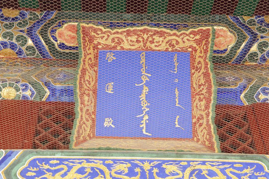 永陵啓運殿の扁額(へんがく)。(2025年7月4日撮影、撫順=新華社記者/藍建中)