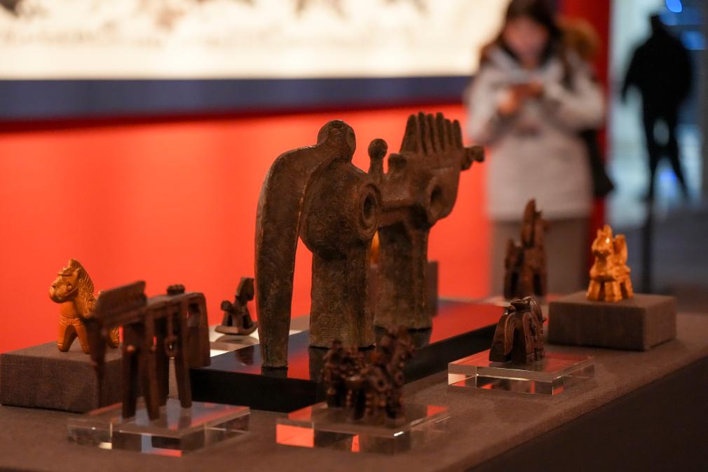 【新華社ハルビン1月25日】中国黒竜江省のハルビン市博物館で22日、中国の著名芸術家、韓美林(かん・びりん)氏の作品展「非凡なる馬-韓美林馬年芸術展」が開幕した。馬をテーマにした作品を中心に、水墨画、ブロンズ彫刻、陶磁器などを展示。形の再現から内面の表現まで、創作の軌跡を紹介している。