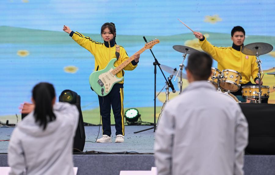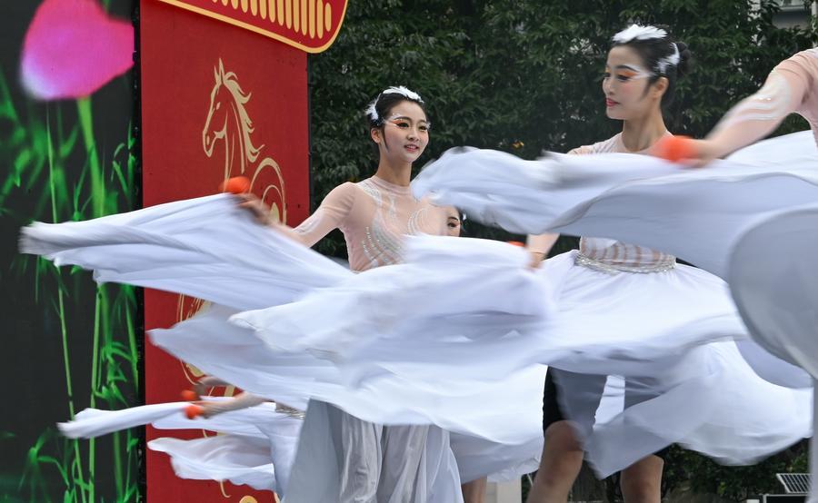 23日、パフォーマンスを披露する出場者。(重慶=新華社記者/陳誠)