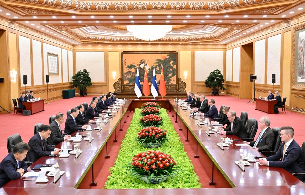 【新華社北京1月27日】中国の李強(り・きょう)国務院総理は27日午後、中国を公式訪問したフィンランドのオルポ首相と北京の人民大会堂で会談した。