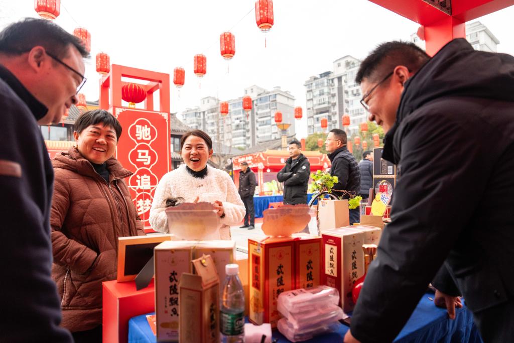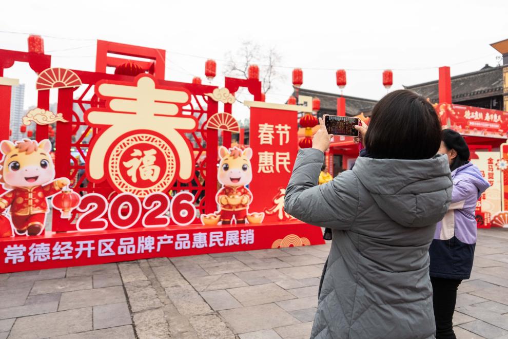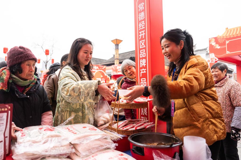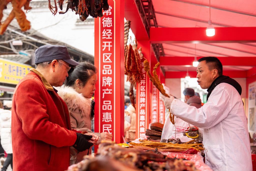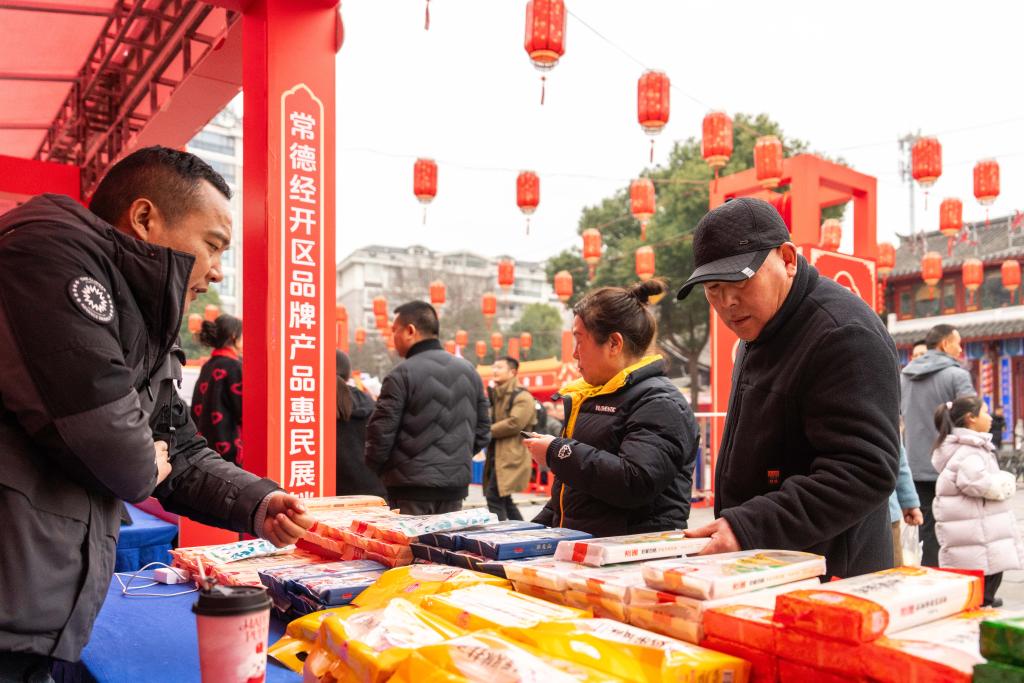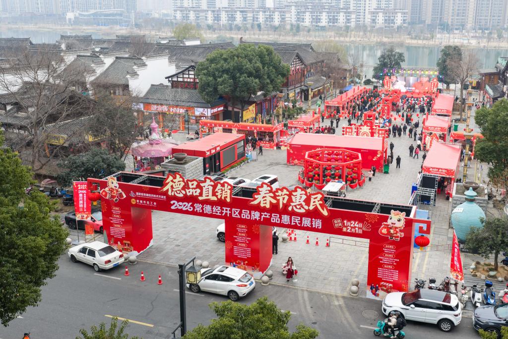 【新華社常徳1月28日】中国湖南省常徳市の河街春秋広場で24日、春節(旧正月)向けの特産品や年越し商品などが集まった展示販売イベントが始まった。常徳経済技術開発区と常徳市総工会(労働組合)が共催し、ショッピングや各種催しを組み合わせた消費イベントとして、新春の祝祭ムードを盛り上げる。会期は2月1日まで。(記者/陳思汗)