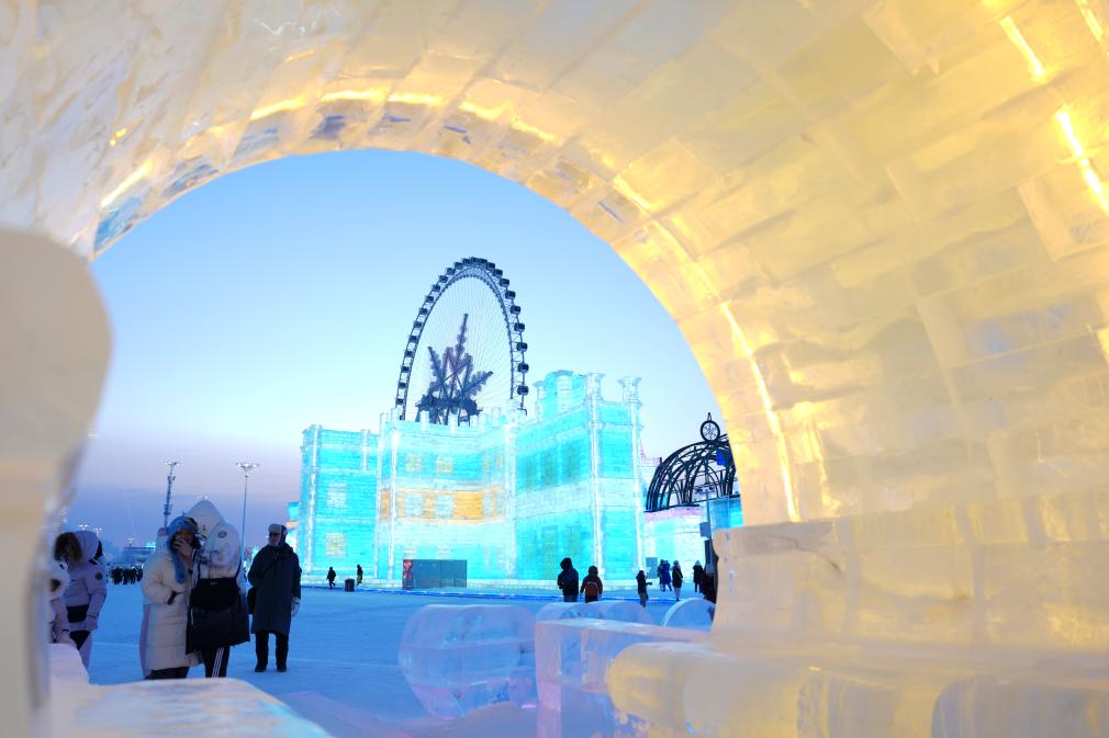 27日、ハルビン氷雪大世界の氷彫刻。(ハルビン=新華社記者/王松)