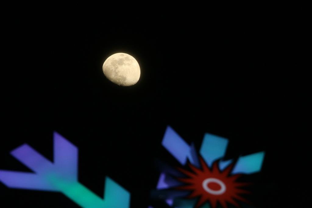 29日、黒竜江省亜布力(ヤブリ)スキー観光リゾートで撮影した月。(ハルビン=新華社配信/曾東)