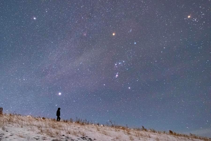 【新華社ハルビン1月31日】中国最北の黒竜江省で、冬の星空が見頃を迎えている。夜が深まると、澄んだ夜空には「冬の大三角」や「冬のダイヤモンド」がくっきりと浮かび、天頂にはオリオン座が輝く。オーロラが姿を見せることもある。氷雪に覆われた大地と静かな星空が響き合い、厳冬ならではの光景が広がっている。