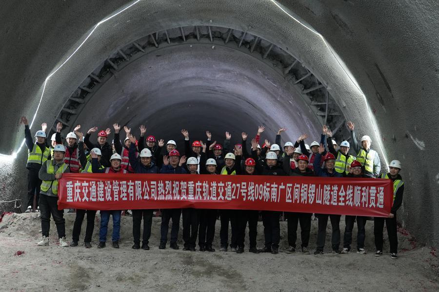 【新華社重慶1月31日】中国重慶市で建設中の重慶軌道交通27号線の南坪駅-広福大道駅区間にある銅鑼山トンネルが28日に貫通した。同線の建設の成否を左右する重要工事とされており、全線開通に向けて強固な基盤が築かれた。