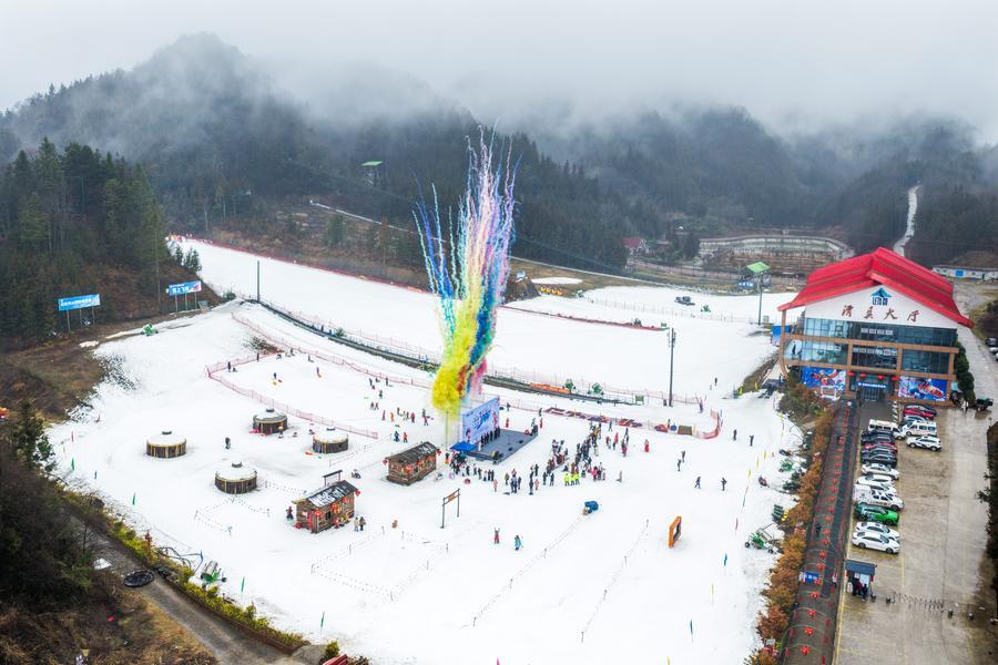 【新華社重慶1月31日】中国重慶市石柱トゥチャ族自治県冷水鎮の天山国際スキー場で30日、氷雪カーニバルイベントが開幕した。