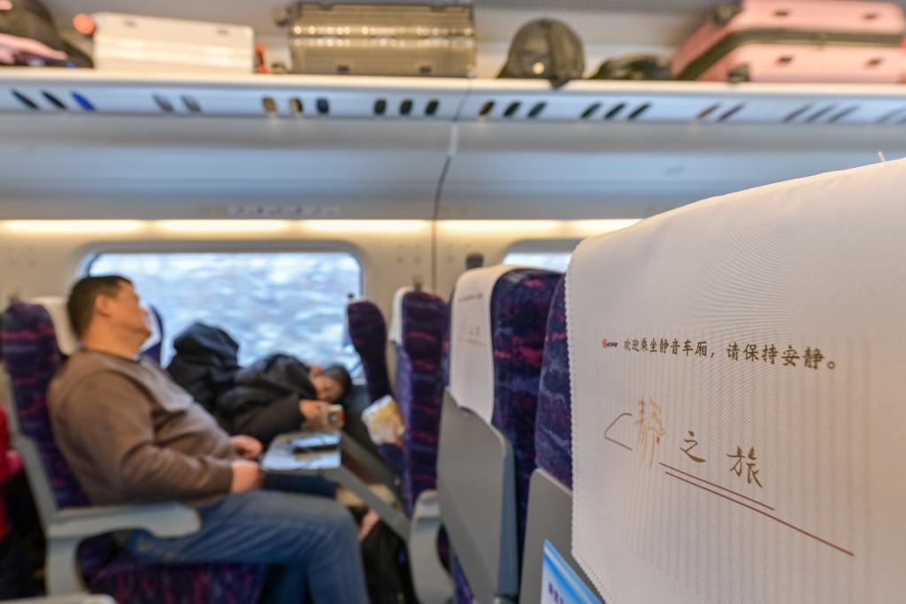 【新華社合肥2月3日】中国の高速鉄道は1日から、車内の静粛性を重視した「サイレント車両」を大幅に拡大した。寝台列車を除く準高速のD系や最速クラスに当たるG系にも導入され、対象列車は全国で8千本を超える。