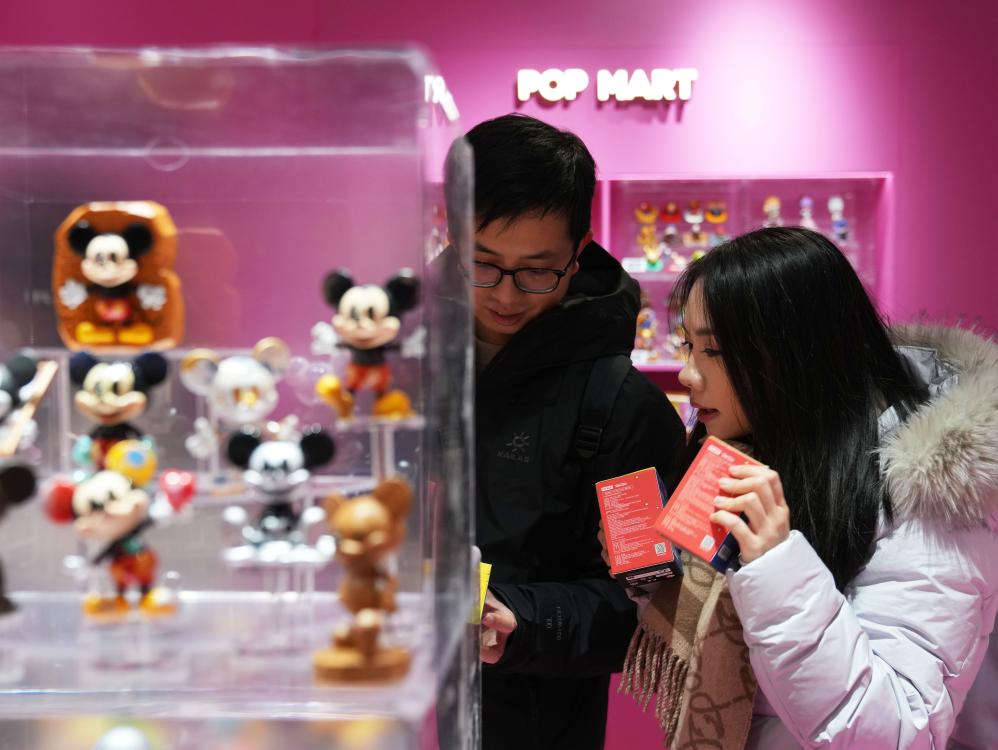 1日、上海・BFC外灘金融センターのショッピングモールでブラインドボックスを選ぶ客。(上海=新華社記者/劉穎)
