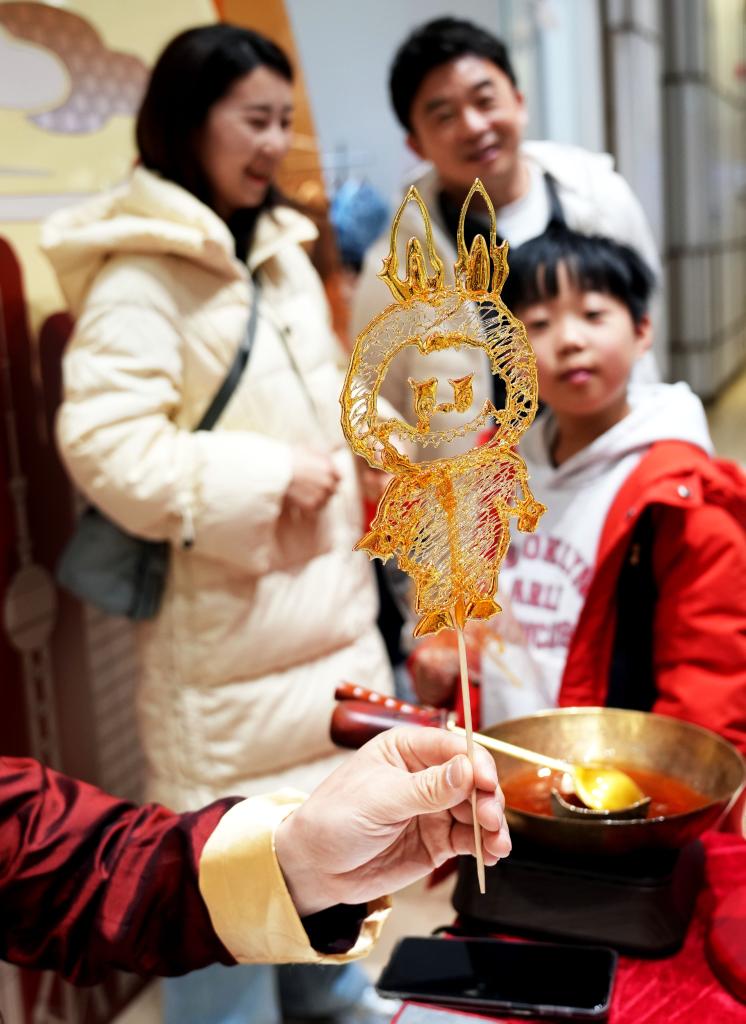 1日、上海・BFC外灘金融センターのショッピングモールで職人が作ったあめ細工。(上海=新華社記者/劉穎)