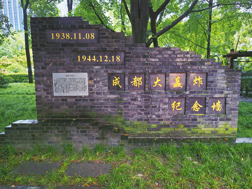 四川省成都市の人民公園にある成都大爆撃記念碑。(成都=新華社記者/李洪磊)