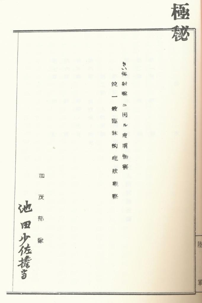 同館の金士成(きん・しせい)研究員によると、資料は42ページで、731部隊の軍医、池田苗夫が作成し、表紙には「加茂部隊池田少佐担当」と記されている。1940年9月7日から10日に20人の被験者を用いて実施された野外での黄弾(びらん性毒剤)射撃、毒ガス水溶液の経口投与と人体への接種など複数の実験が詳細に記録され、番号のみで記された被験者は最終的に全員死亡した。