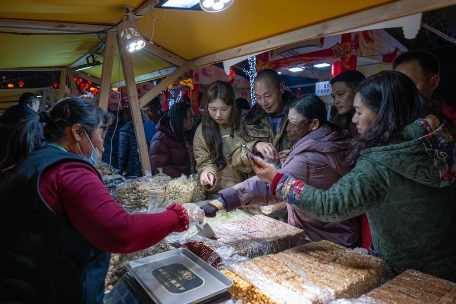 5日、春節用品文化フェアで買い物をする来場者。(重慶=新華社記者/陳誠)