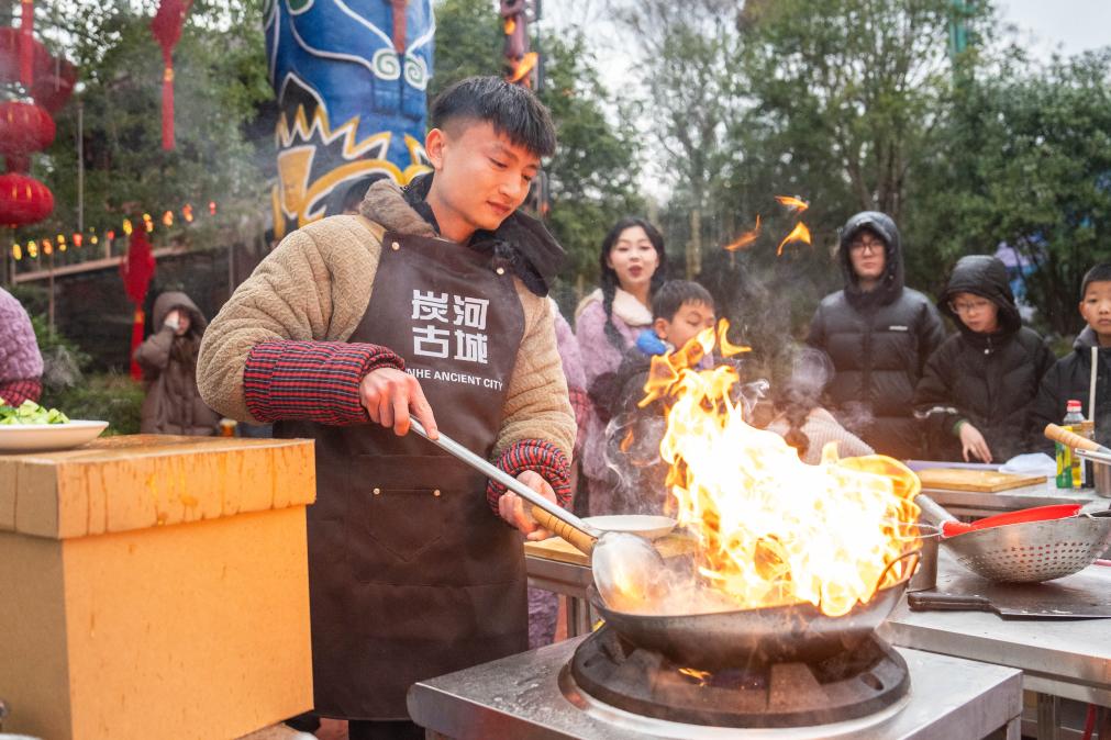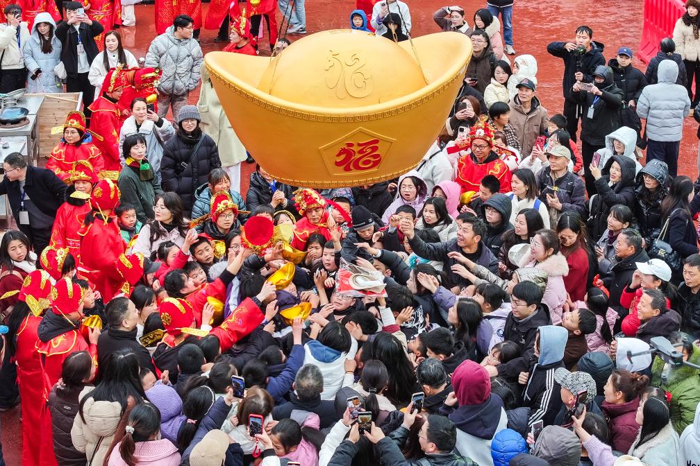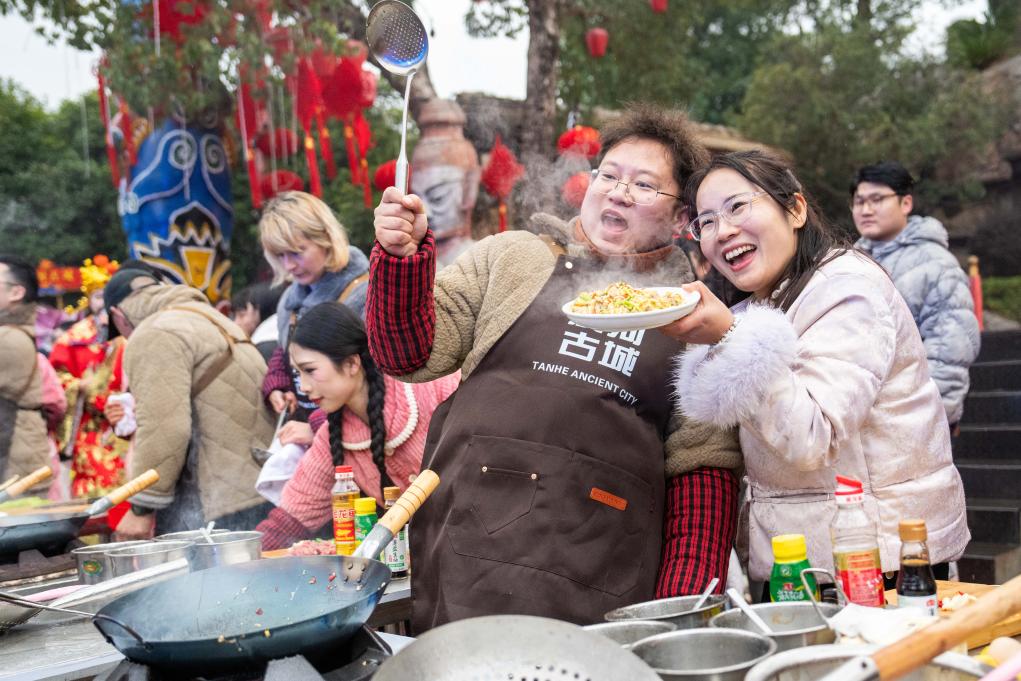 【新華社長沙2月9日】中国湖南省寧郷市の炭河古城風景区で7日、「春節カーニバル」イベントが開催された。百人の財神(福の神)が観光客を出迎える「百神迎賓」や、観光客が地元の正月料理作りに挑戦するコンテストなど、伝統的な正月行事を融合した没入型文化体験プログラムが行われ、春節の到来を前に会場は祝祭ムードに包まれた。