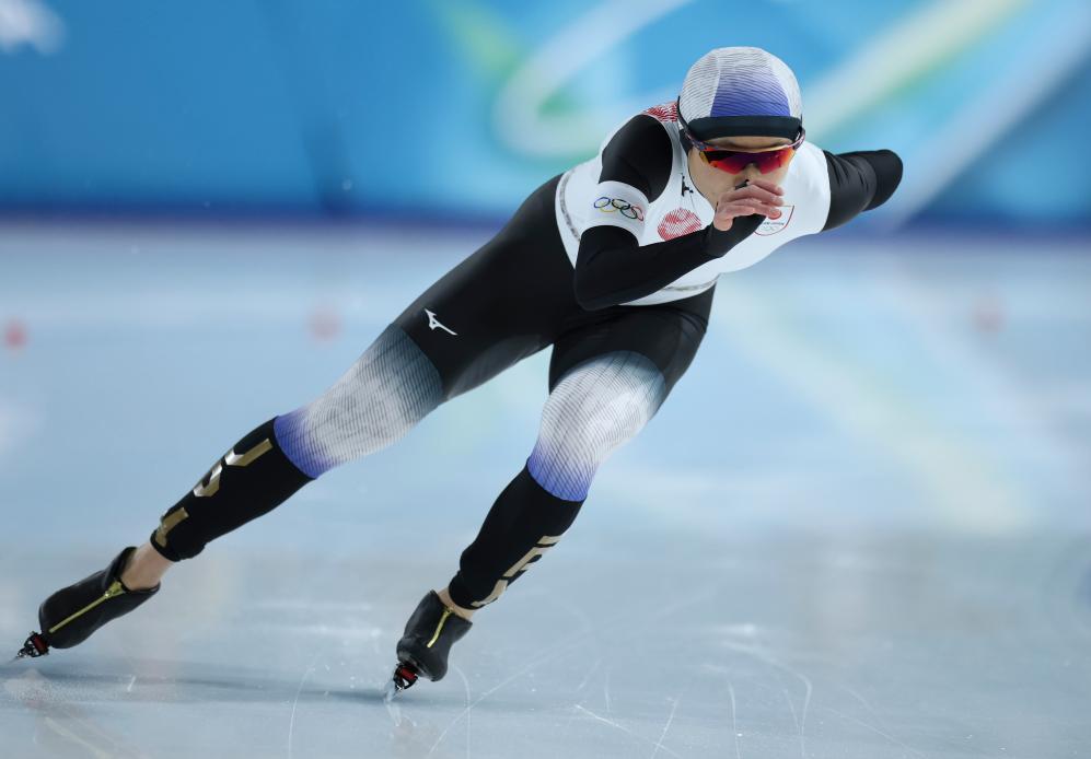 9日、レースに臨む高木美帆。(ミラノ=新華社記者/杜瀟逸)