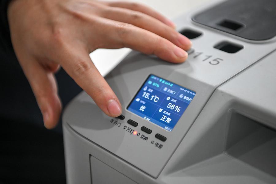 9日、ペットを入れる専用ケージの環境設定を行う鉄道職員。(重慶=新華社記者/唐奕)