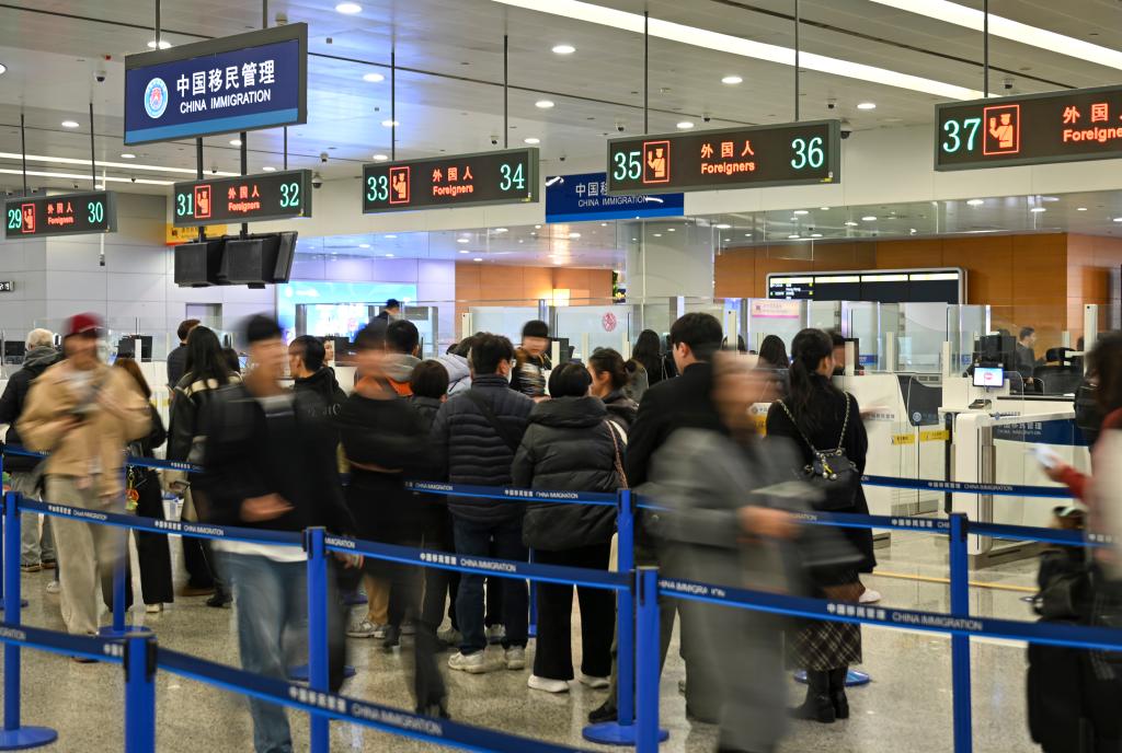 【新華社上海2月12日】中国上海市内の口岸(通関地)は、春節(旧正月、今年は2月17日)を前に入国ラッシュを迎えている。