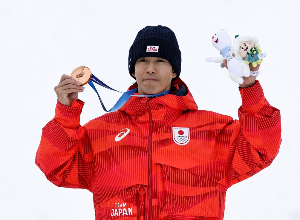 12日、表彰式に臨む堀島行真。(リビーニョ=新華社記者/胡超)