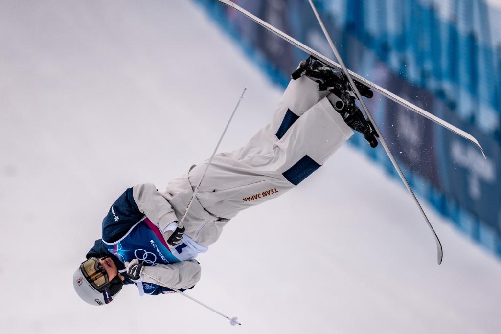 12日、エアを決める堀島行真。(リビーニョ=新華社記者/胡超)