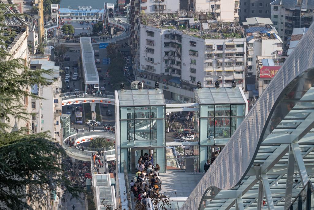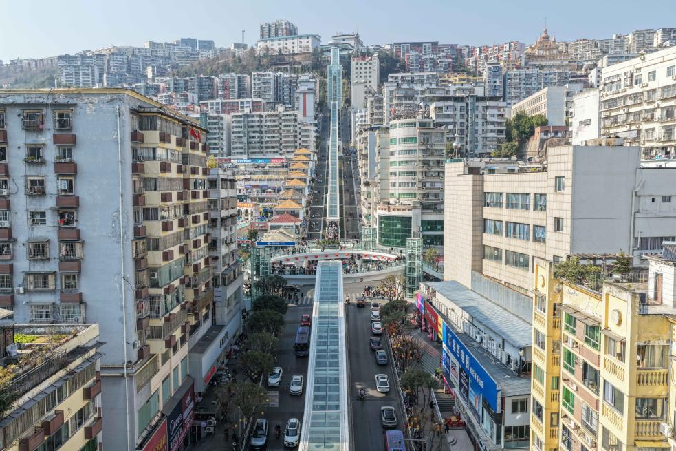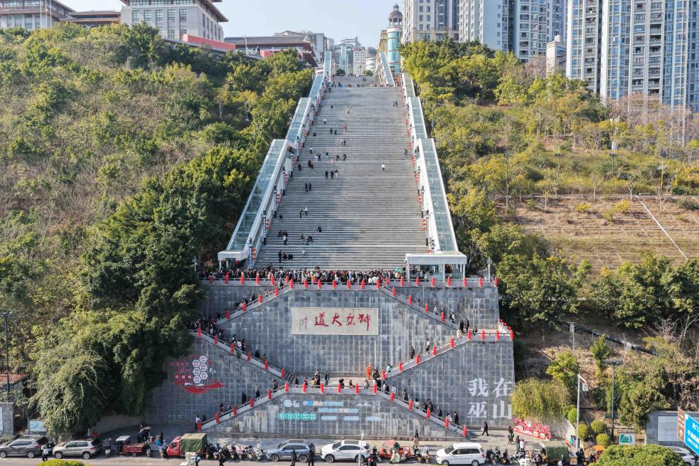 【新華社重慶2月14日】中国重慶市巫山県で12日、「神女大エスカレーター」が試験運転を開始した。