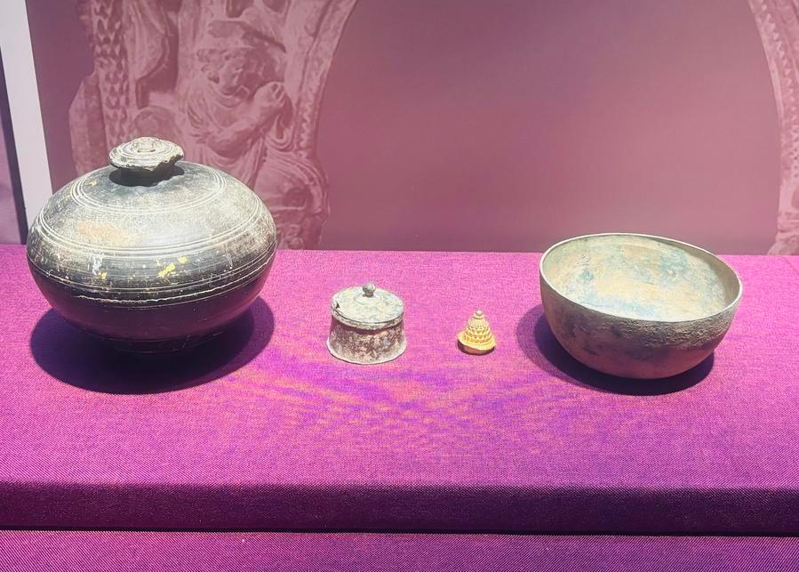 10日、天津博物館「芳香妙相-南京大報恩寺遺跡博物館蔵ガンダーラ造像展」の展示品。(天津=新華社記者/周潤健)