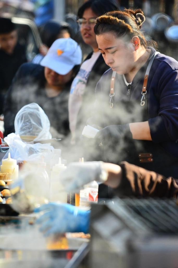 12日、太子務大集で料理を作る業者。(天津=新華社配信/朱建発)