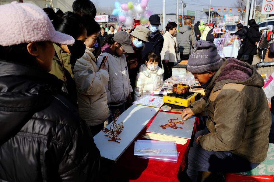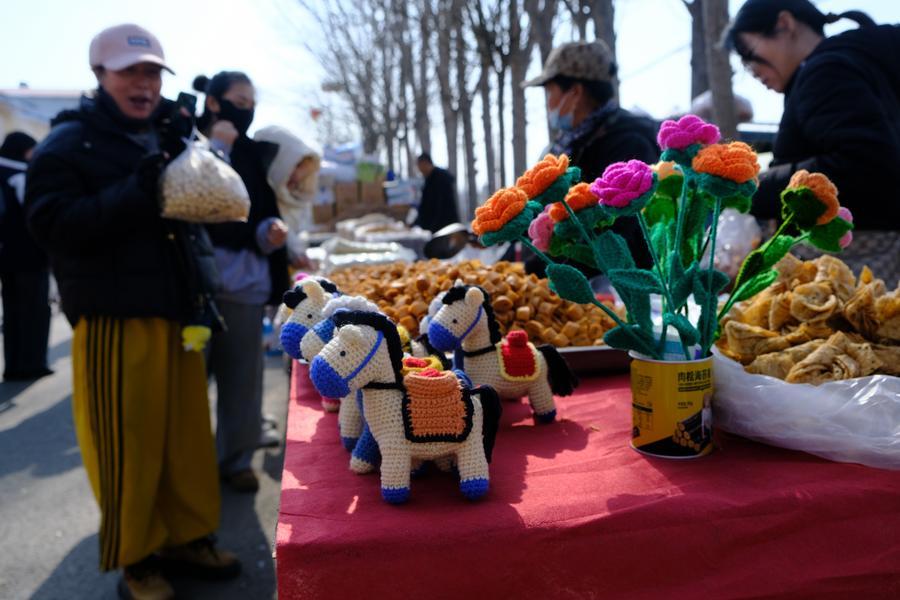 【新華社天津2月14日】中国天津市武清区の太子務村で12日、春節(旧正月)用品のマーケット「太子務大集」が開かれた。300年もの歴史を持つ催しで、開催日は旧暦12月25日と定められ、全国で最も開催間隔が長いことで知られる。定番の軽食や職人技が光る伝統工芸品、鮮やかな赤が目を引く装飾品など、さまざまな品物がそろい、京津冀(北京・天津・河北2市1省)地域の住民に親しまれている。