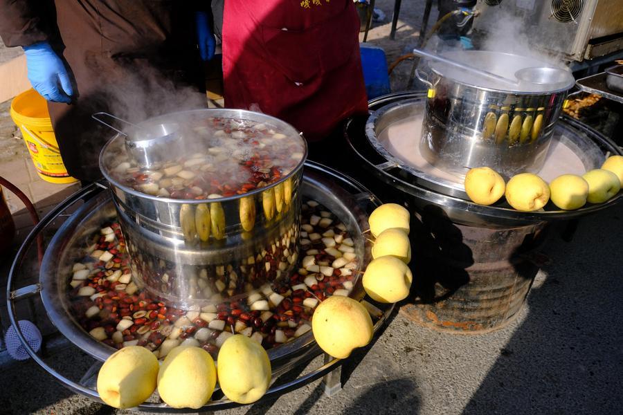 12日、太子務大集に並ぶ料理。(天津=新華社配信/于長華)