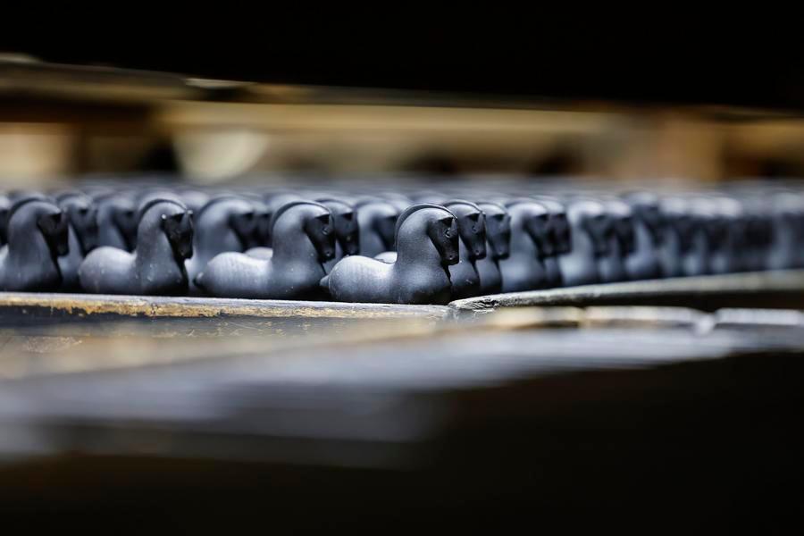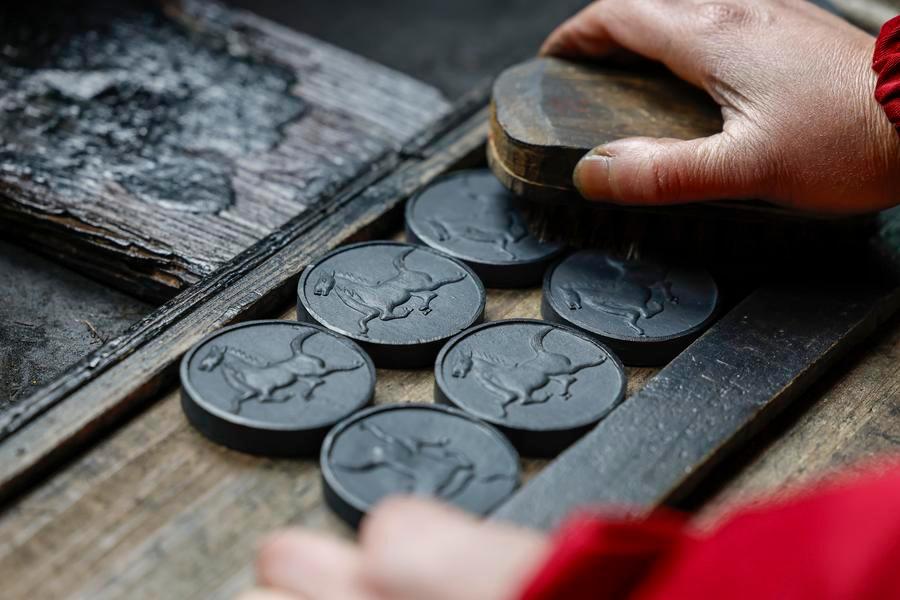 11日、老胡開文墨廠で作られている「立体唐馬墨」。(黄山=新華社配信/施亜磊)