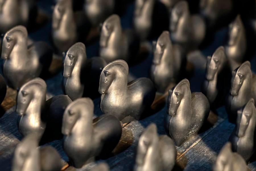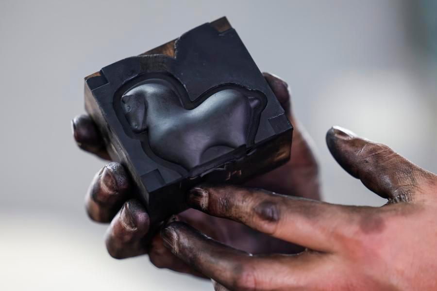 11日、馬の意匠を取り入れ、老胡開文墨廠で作られた徽墨。(黄山=新華社配信/施亜磊)