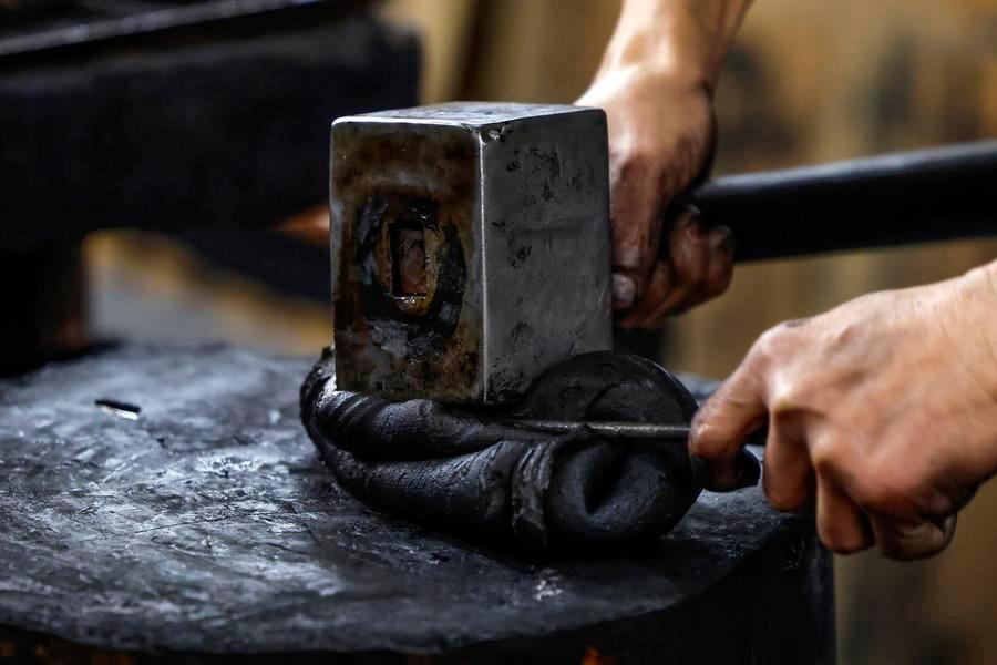 11日、老胡開文墨廠で作られている徽墨。(黄山=新華社配信/施亜磊)