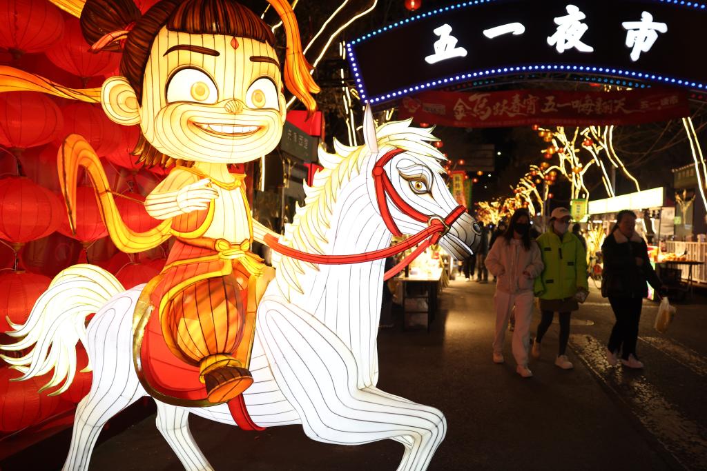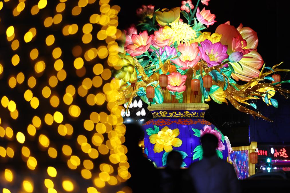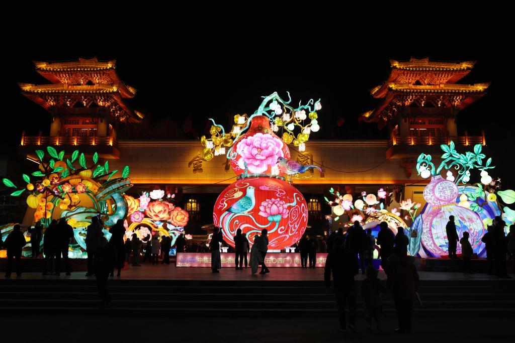 【新華社蘭州2月16日】中国甘粛省蘭州市西固区で、春節(旧正月)を祝う迎春ランタン祭りが多くの人を引き付けている。夜空の下、色とりどりのランタンがきらびやかに輝き、伝統工芸と現代の照明技術を融合させた多彩な作品が旧暦新年の雰囲気を一層盛り上げている。