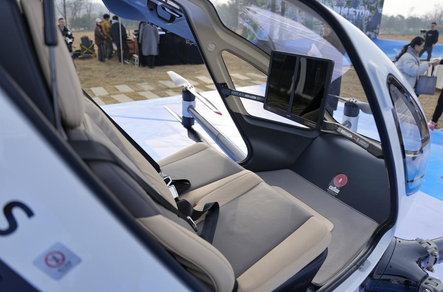 13日、地上展示されたeVTOLの機内。(成都=新華社記者/劉坤)