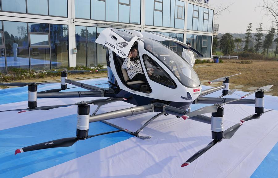 【新華社成都2月17日】中国四川省で無人機などを使った公共サービスや輸送を手がける四川省低空経済産業発展は13日、同省成都市の市街地で初となる電動垂直離着陸機(eVTOL)の有人飛行試験を実施した。竜志宇(りゅう・しう)董事長が自ら搭乗し、錦江区の「智飛センター」から離陸。高度80メートルで10分間ホバリングした後に着陸した。