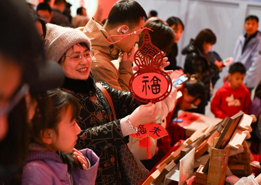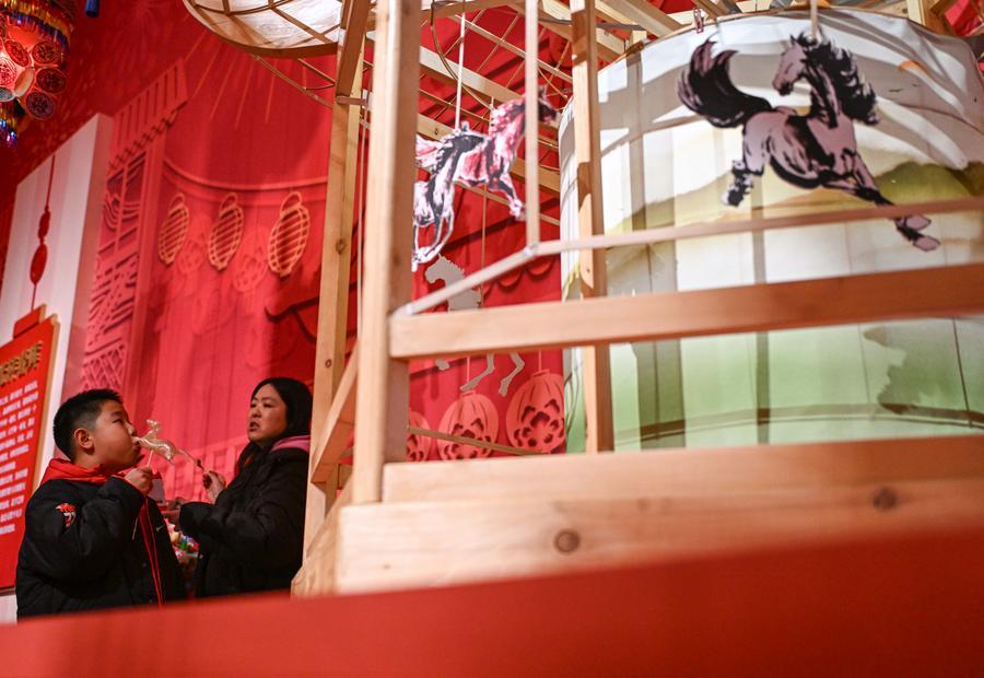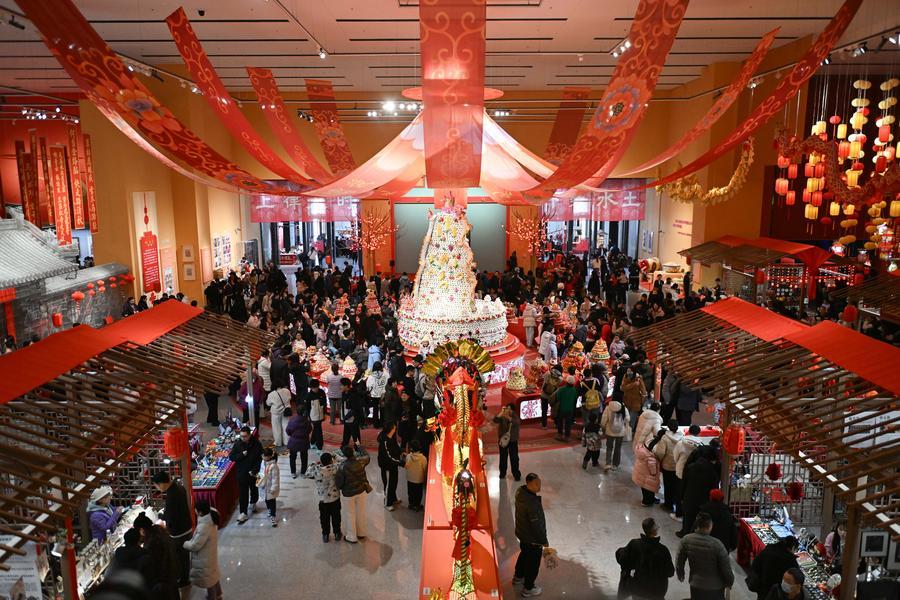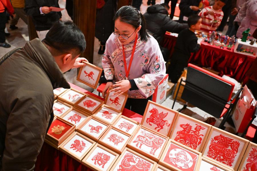 15日、「年越し-丙午春節シリーズテーマ展」の無形文化遺産マーケット。(北京=新華社記者/陳鍾昊)