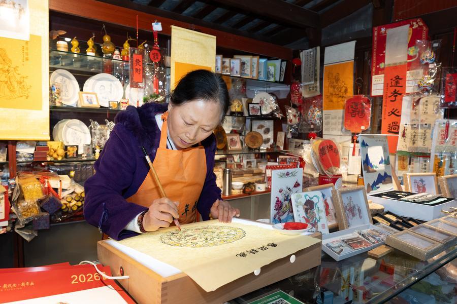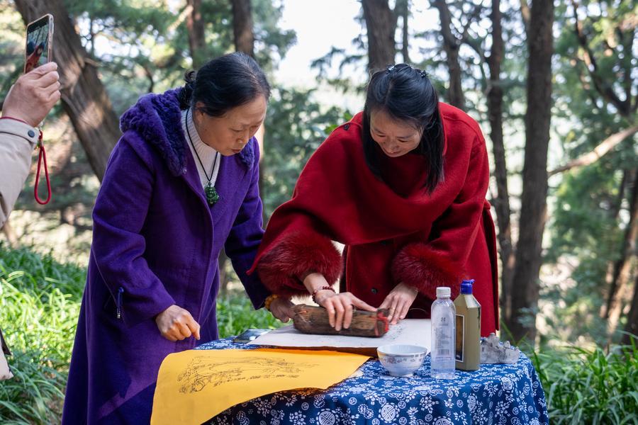 【新華社綿陽2月17日】中国四川省綿陽市梓潼(しとう)県の大廟山にある羅智婉梓潼木版年画工房で12日、版画などの体験イベントが行われ、多くの観光客が参加した。工房では春節(旧正月)連休期間中、特色ある作品や文化クリエーティブ商品を販売するほか、彫刻や拓本、年画など、親子で伝統文化の魅力を味わえるイベントを開催する。