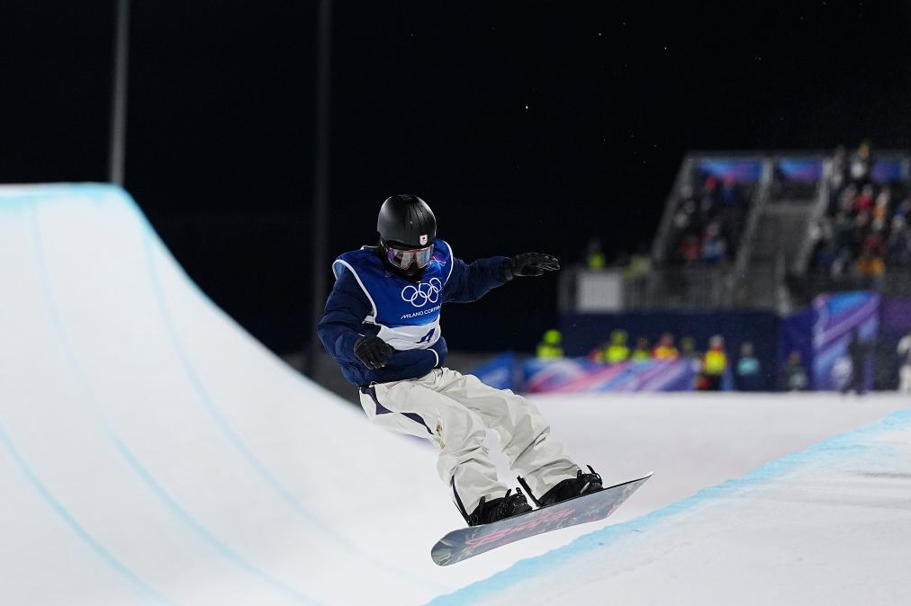 11日、リビーニョで、スノーボード男子ハーフパイプ予選に臨む日本の平野歩夢。(リビーニョ=新華社記者/鄔恵我)