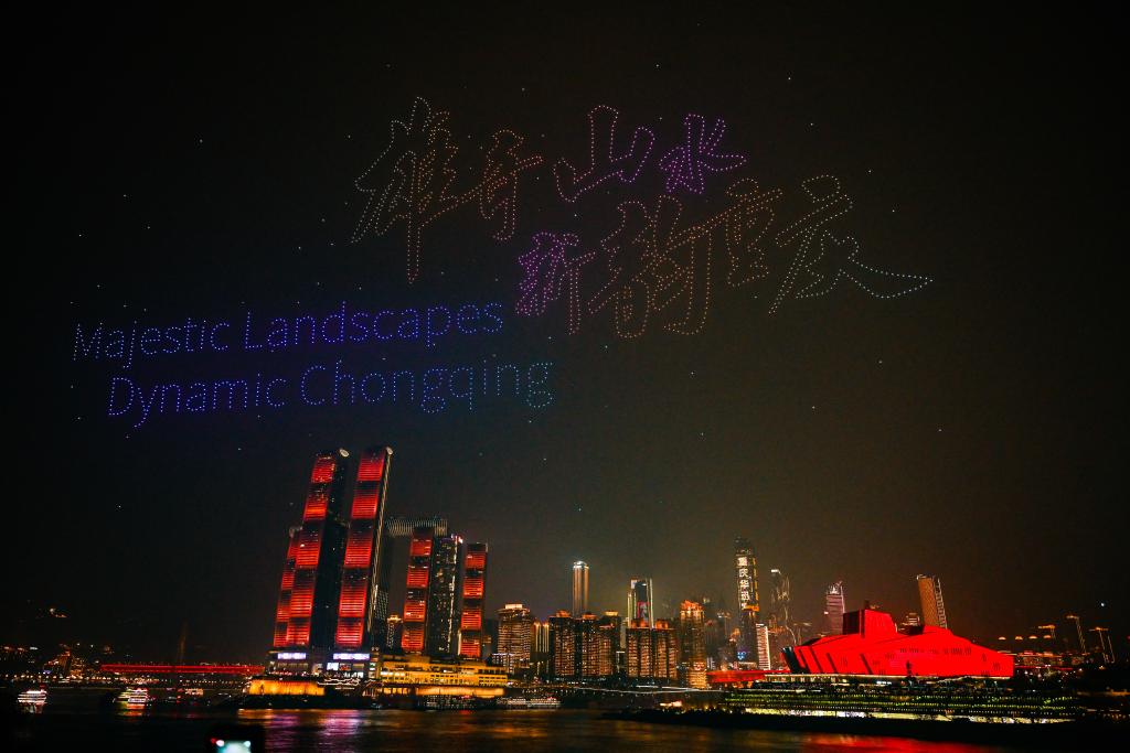 17日、重慶市で行われたドローンライトショー。(重慶=新華社記者/王全超)