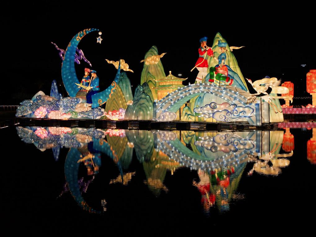 南寧市の文化観光芸術園では10日夜、新春カーニバルが開幕。約40組みのランタンが同時に点灯し、9万5千平方メートルの会場を幻想的に照らした。来場者は「伝統の趣を残しつつ、民族文化の魅力が際立っている」と語った。