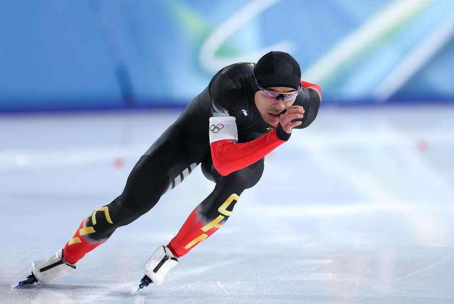19日、スピードスケート男子1500メートル決勝に臨む寧忠岩。(ミラノ=新華社記者/李京)