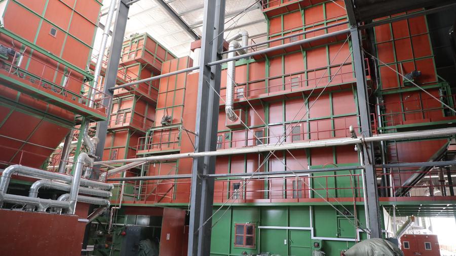安徽省六安の羽毛製品メーカー、六安市海洋羽毛の羽毛分別機。(1月24日撮影、六安=新華社記者/戴威)