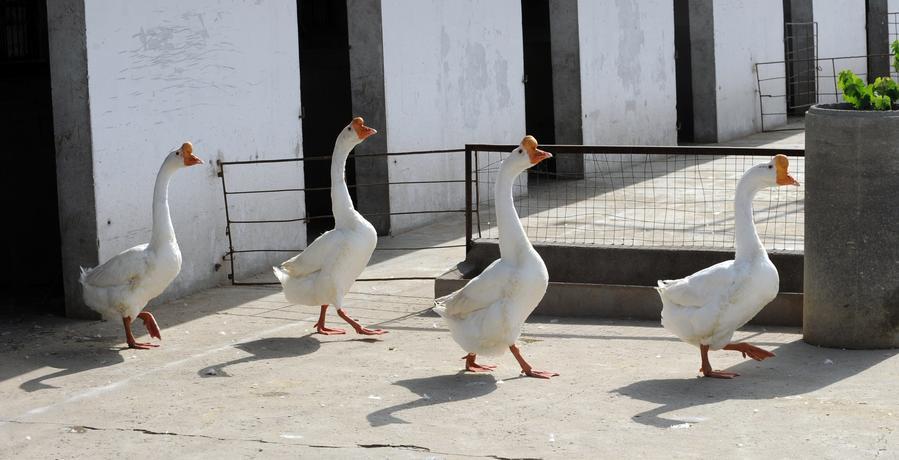 皖西白鵝の群れ。(六安=新華社配信/張光照)