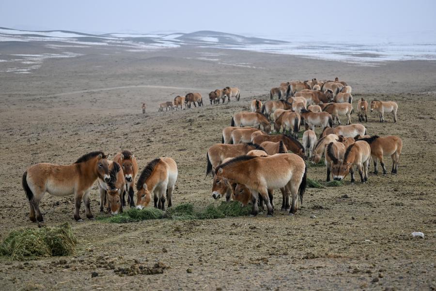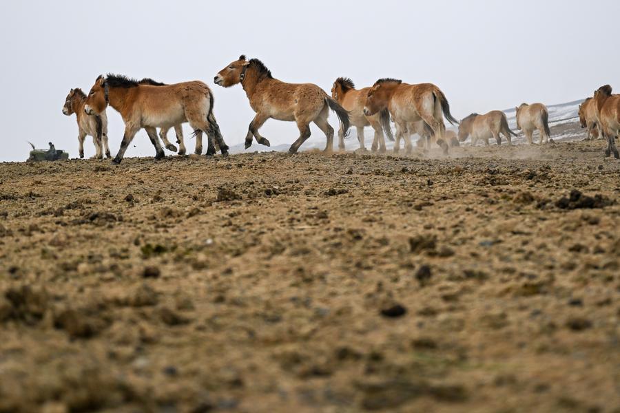 【新華社ウルムチ2月21日】中国新疆ウイグル自治区北西部、ジュンガル盆地北縁にあるカラマイリ山有蹄類野生動物自然保護区では新たな春が始まり、モウコノウマ保護の任務を担う人々が最前線に立って「荒れ地の生きた化石」の生存と繁殖を守り続けている。