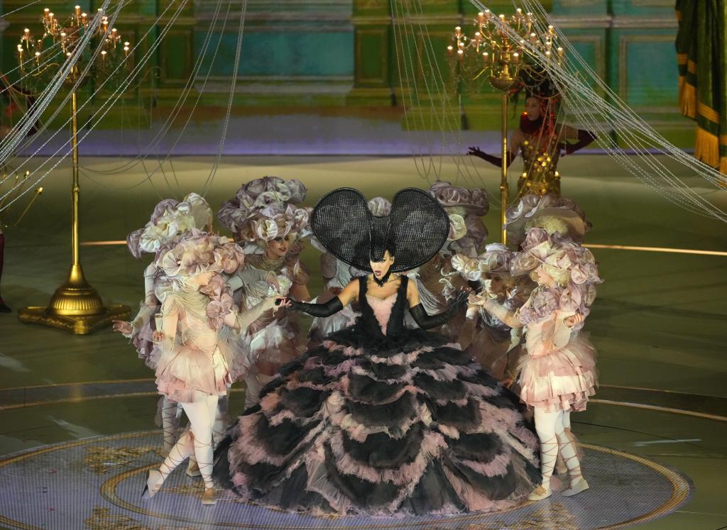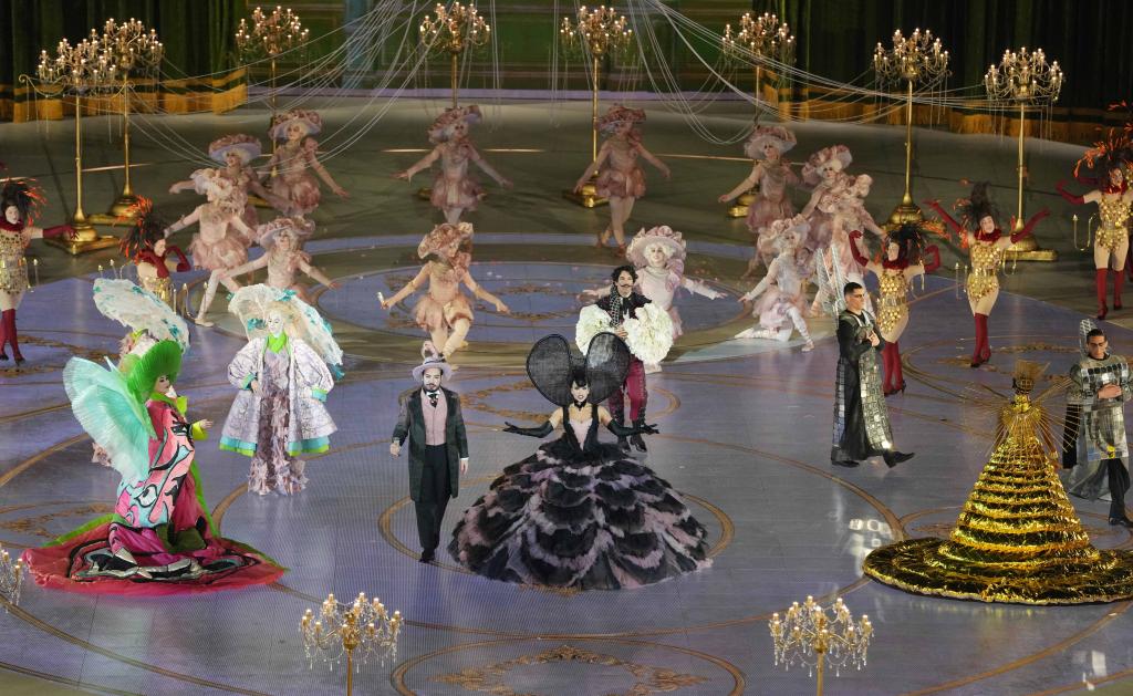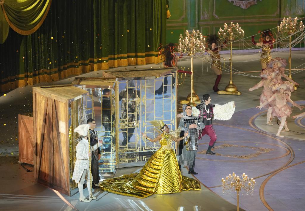 22日、ミラノ・コルティナ冬季五輪閉会式のパフォーマンス。(ベローナ=新華社記者/李明)