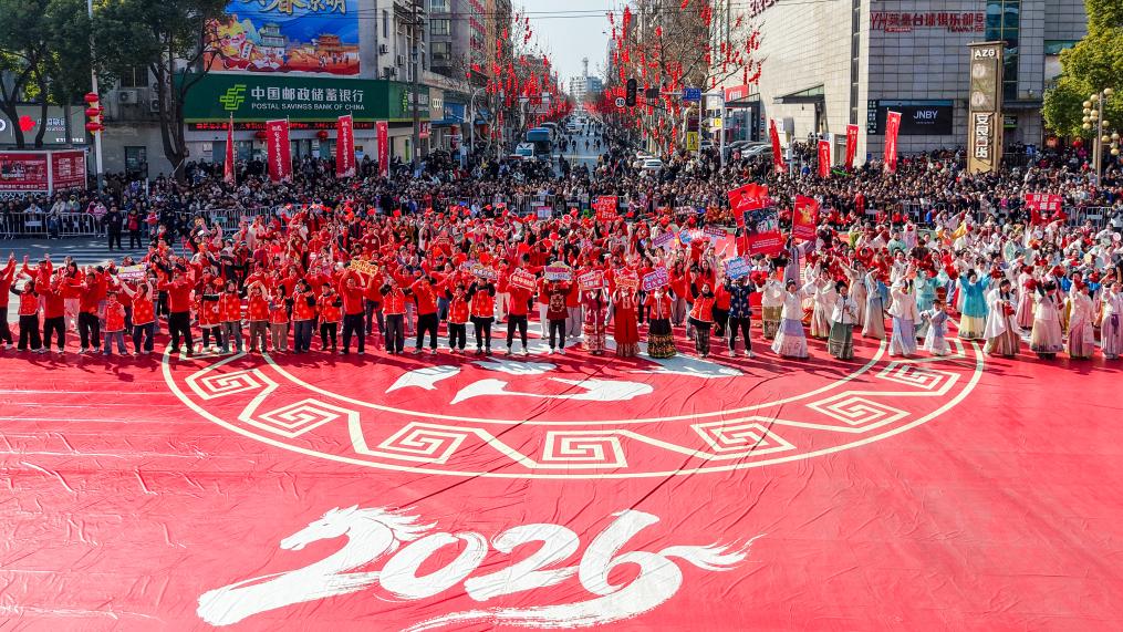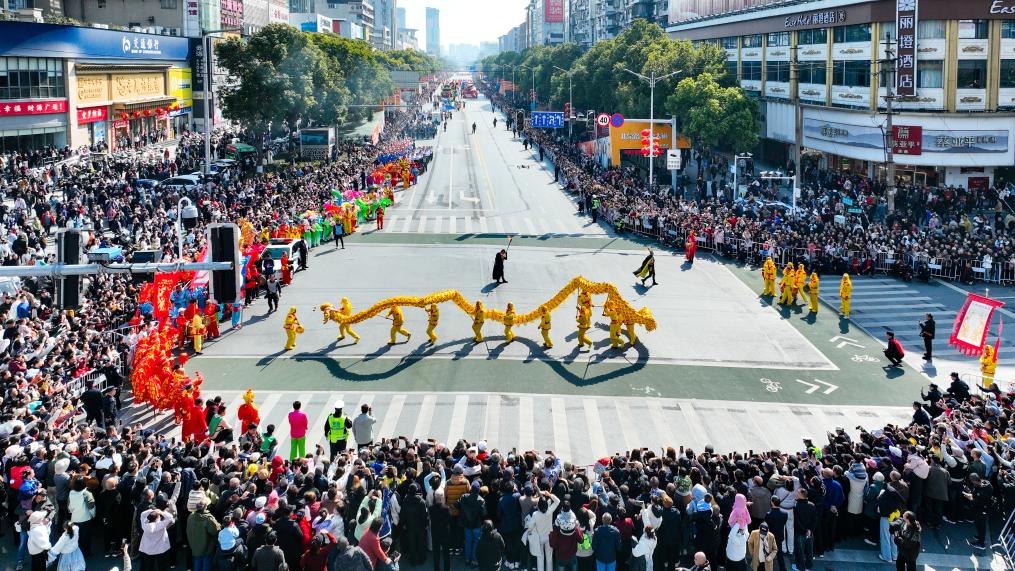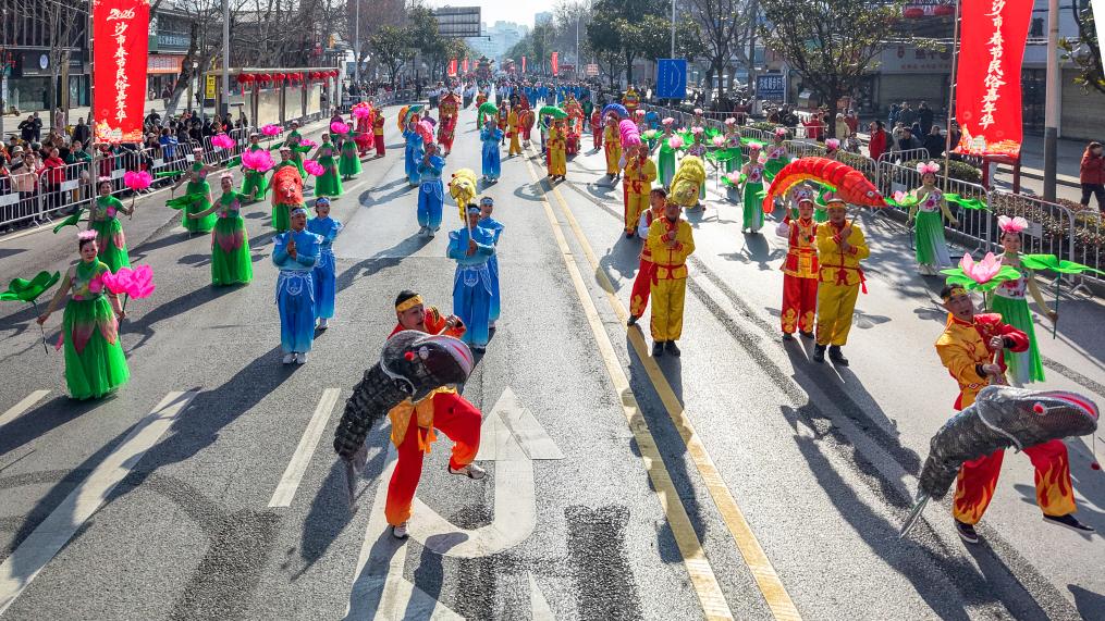 【新華社荊州2月23日】中国湖北省荊州市沙市区で21日、「ふるさとで年越し、家族で祝う新春」と題した春節民俗イベントが開かれた。訪れた市民や観光客は、伝統的な風情と現代性が融合した華やかなパレードを楽しんだ。