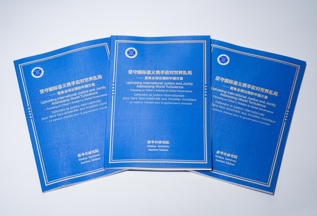シンクタンク報告書「国際的道義の堅持と世界の混乱への共同対処-グローバルガバナンスを巡る中国の提案」。(北京=新華社記者/石楓)