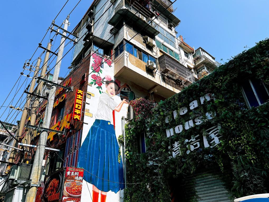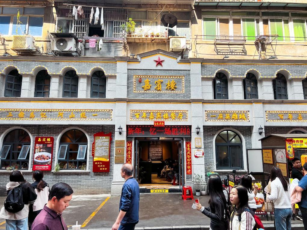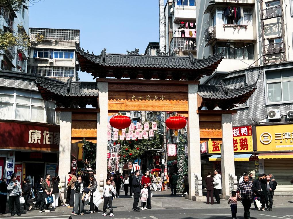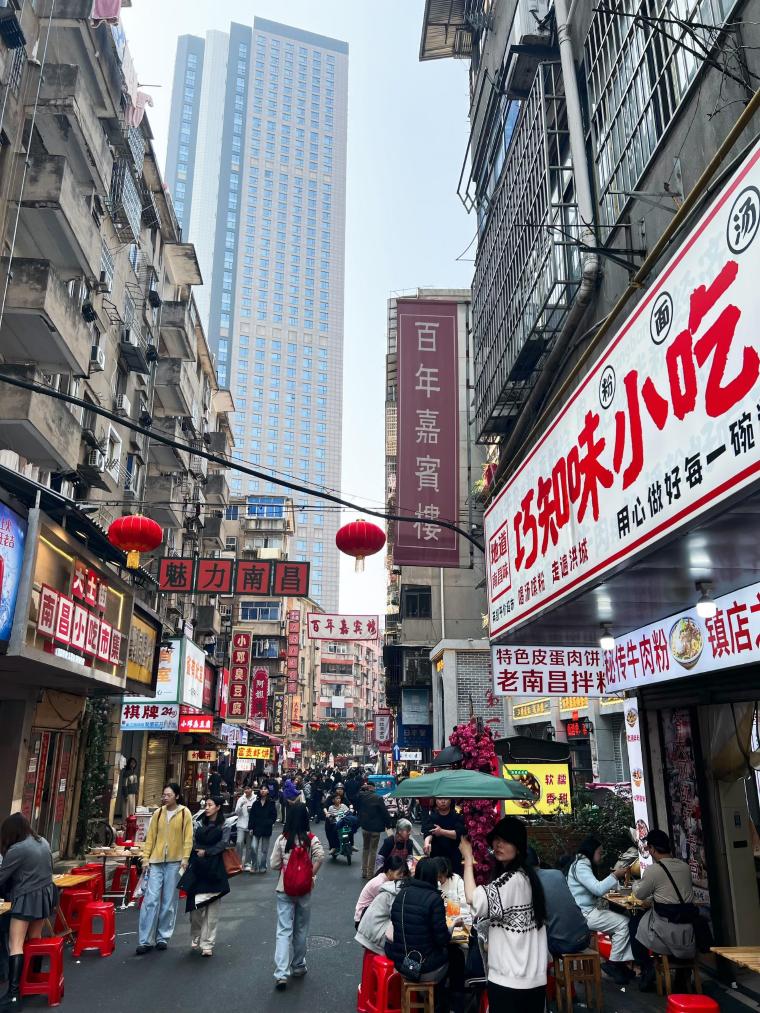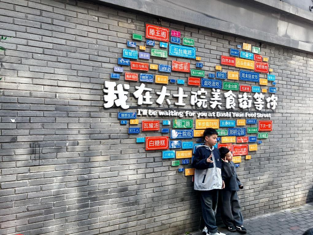 変化の始まりは2023年末の再開発工事だった。「古い物は古いままの趣で修復する」という原則の下、歴史的な姿を残しつつ、大士院の街に新たな生命を吹き込んだ。再建された歴史的建築「嘉賓楼」はかつての輝きを取り戻し、二重のひさしを持つ牌楼(はいろう)は新たなランドマークとなった。色鮮やかな壁面アートに昔の南昌ゆかりの品々が描かれ、若者向けのデザインを取り入れた撮影スポットもある。幼い頃から街区の近くに住む徐(じょ)さん(30)は「この2年で街が大きく変わるのを目の当たりにしてきた。目に見えてにぎやかになり、観光客が絶え間なく訪れるのを見ると、誇らしい気持ちになる」と感慨深げに語った。
