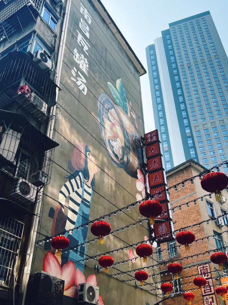 22日、南昌市の大士院街区にある壁面アート。(南昌=新華社記者/楊珏)