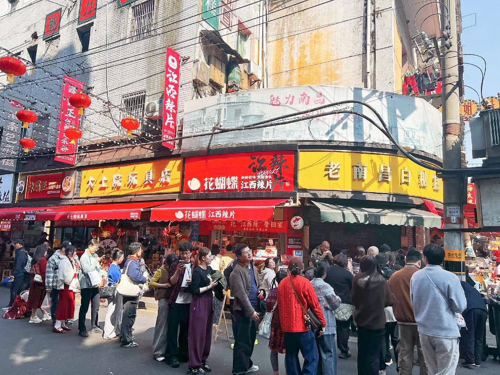 街区で最も心を打つのは、やはり名物料理。春節(旧正月)の期間中、白糖糕(米粉の揚げ菓子)、緑豆餅(緑豆あんの焼き菓子)、拌粉(汁なしビーフン)、水煮(香辛料を入れた煮込み料理)など伝統的な軽食の店には長い列ができていた。白糖糕店の店主は「春節期間の客数は予想をはるかに上回り、用意した材料が足りず、ここ数日は早めに店を閉めるしかなかった」と笑顔で話した。再開発後には200店以上が集まり、一部の飲食店では売上高が3万元(1元=約23円)を超える日もあった。湖南省から訪れた観光客は「暮らしの活気が最も心を癒やしてくれる。街区で売られているのはどれも南昌の郷土料理で、私の口に合う。価格も手頃で、食べ歩きをしてわずか十数元でお腹がいっぱいになった。機会があればまた食べに来たい」と興味が尽きない様子だった。
