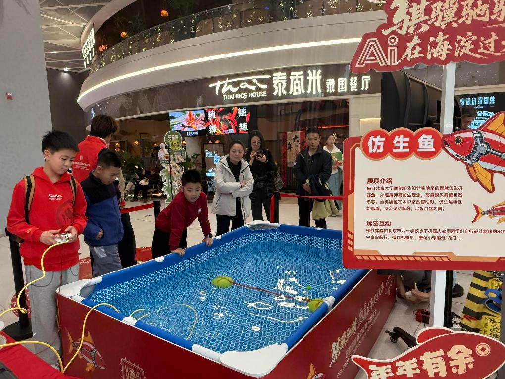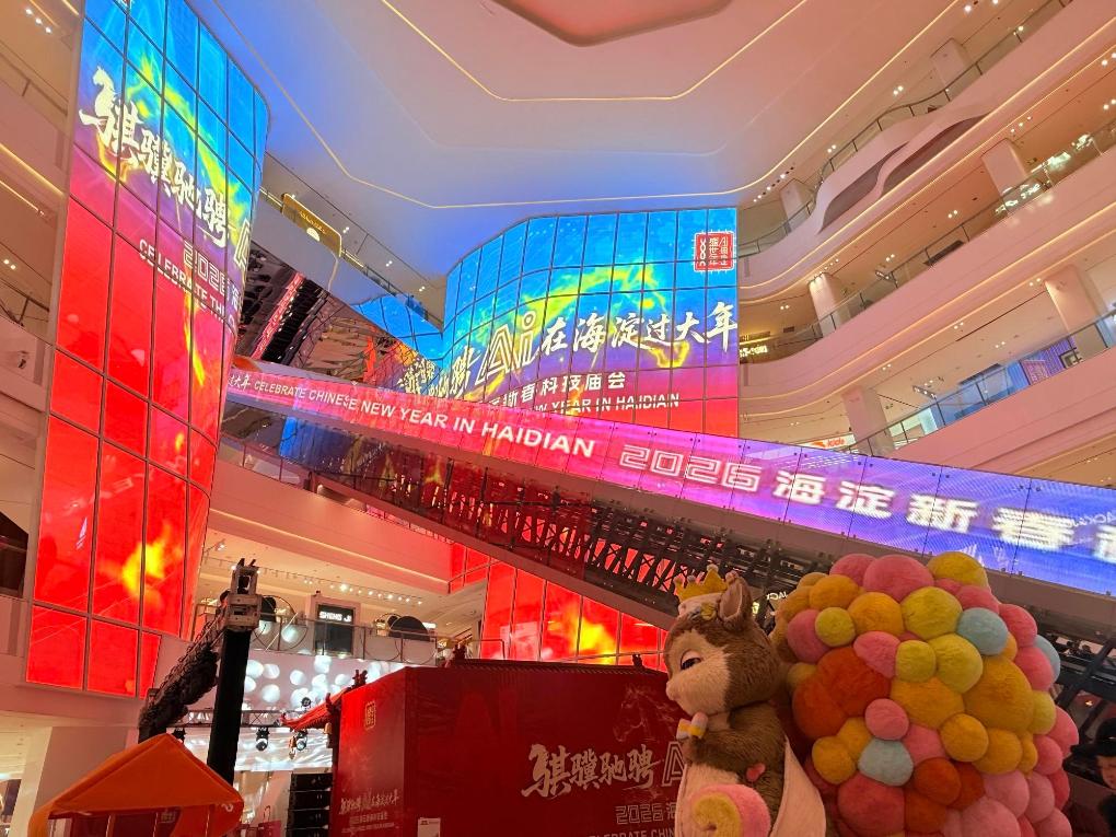 旧暦正月3日に当たる19日には、海淀区の五棵松万達広場で「海淀新春科技廟会」が始まった。70社余りの企業が参加し、150点以上の体験型展示を用意。中国中央テレビ(CCTV)の春節の年越し番組「春節聯歓晩会(春晩)」に登場したロボットや国際的な先端技術の成果、エンボディドAI(身体性AI)ロボットなどが紹介された。大規模言語モデルを搭載したロボットが来場者と対話し、民俗文化を解説する場面もあった。