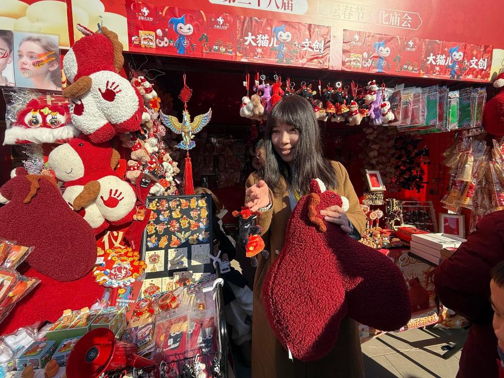 17日、地壇春節文化廟会で販売された干支モチーフのグッズ。(北京=新華社記者/常博深)